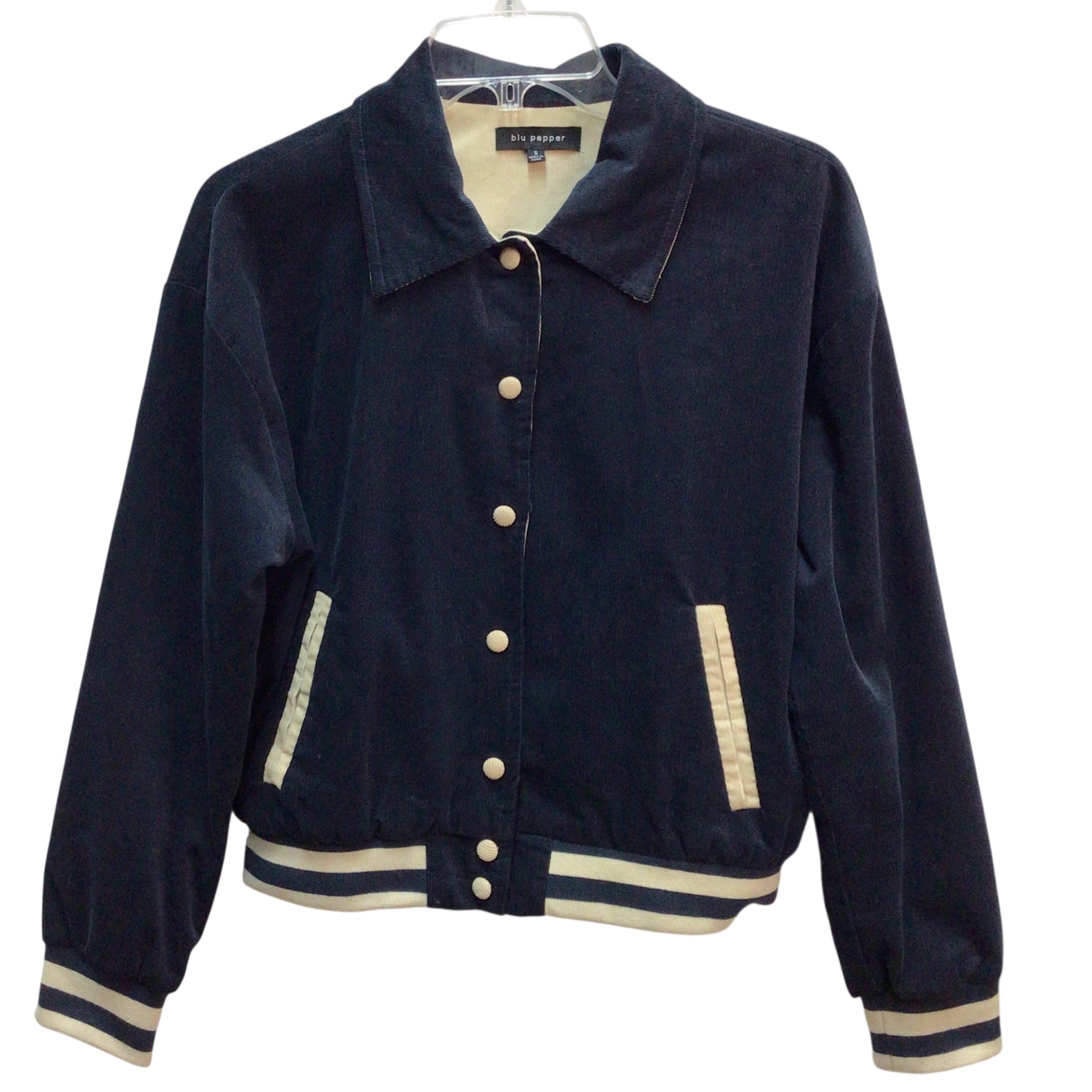 Blu Pepper Courderoy Button Up Letterman Jacket Size S. Pre-owned in very good condition.