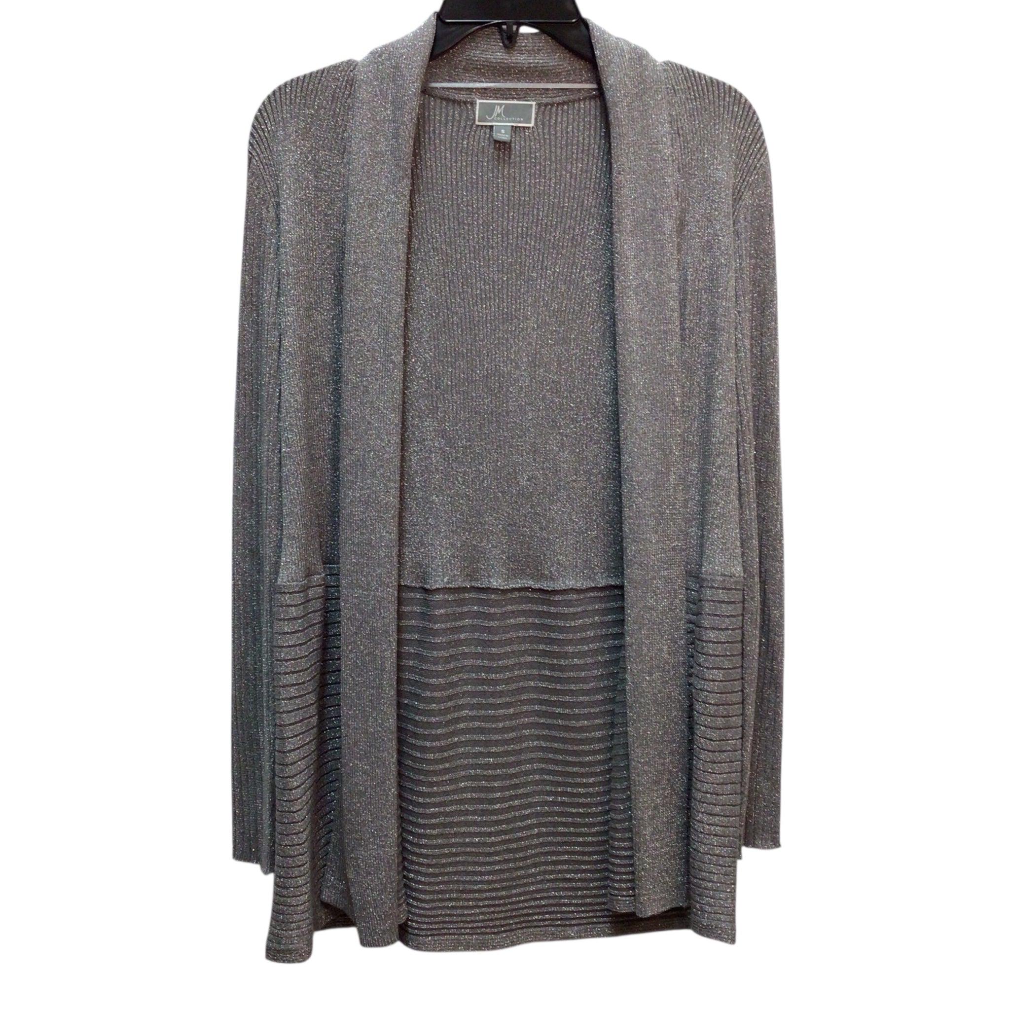 JM Collection Gray Silver Shimmer Long Sleeve Cardigan Size S. Pre-owned, in great condition.